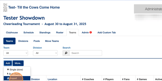 Below are step-by-step instructions for how to add teams to your event as an event administrator.
