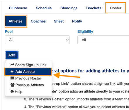 Below are step-by-step instructions on how to build your roster as a coach or club admin.