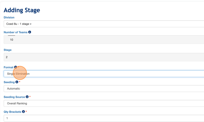 3. Under 'Format', select 'Single Elimination'.