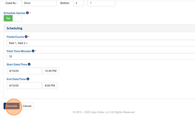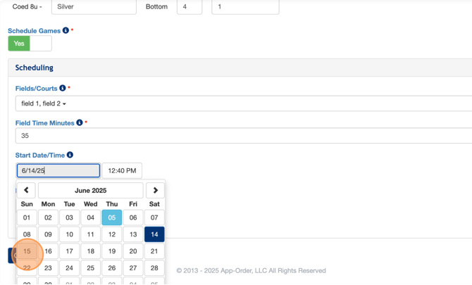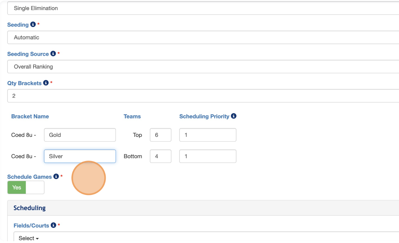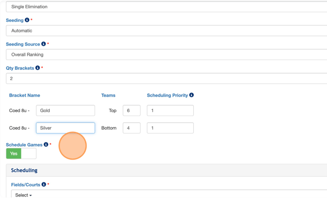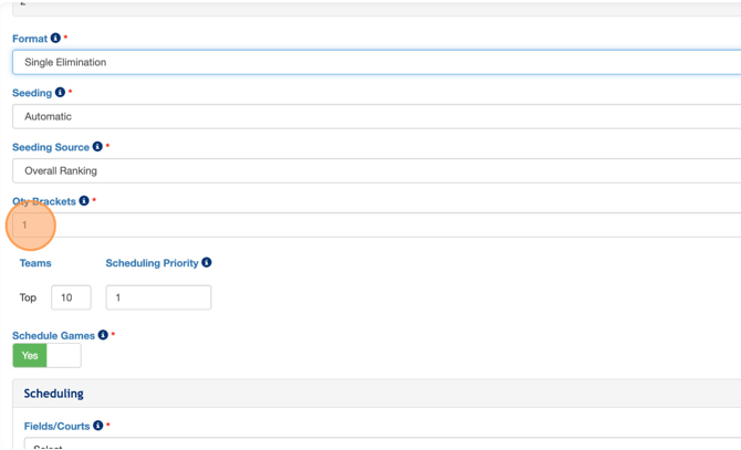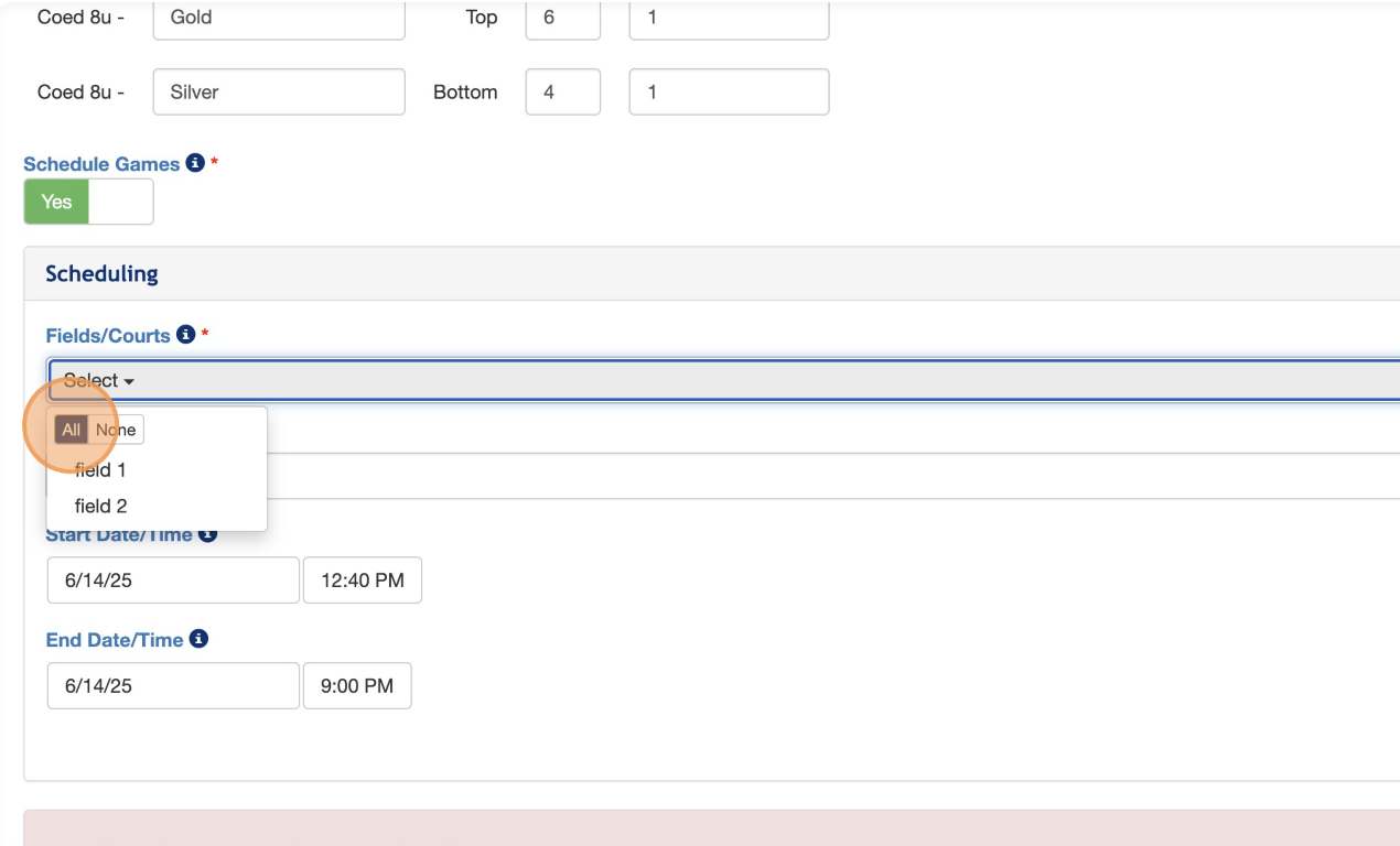 7. Select which of your "Fields" you would like to assign the single elimination games to.