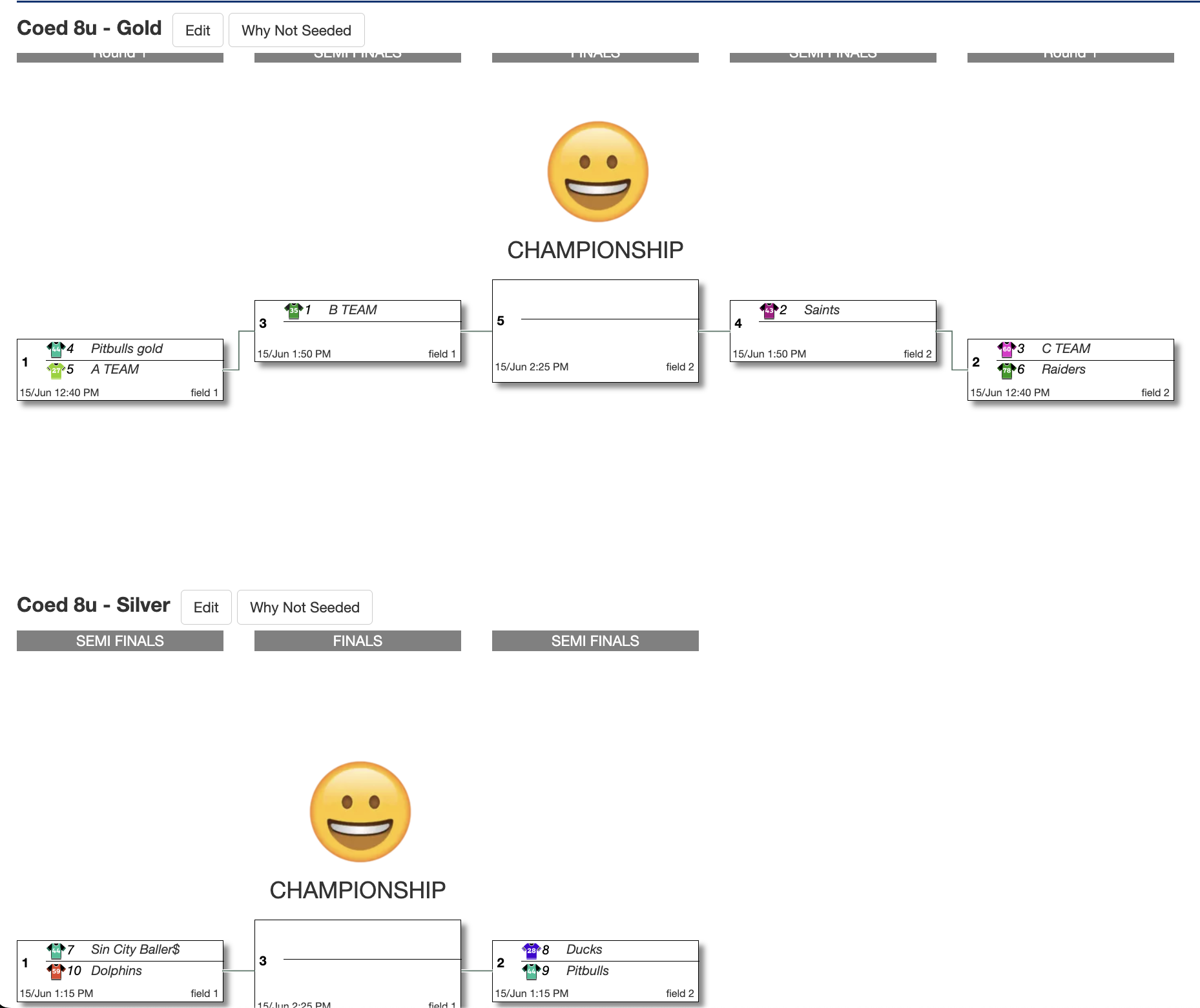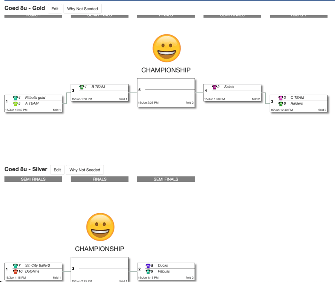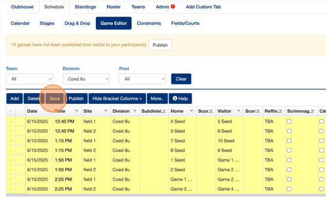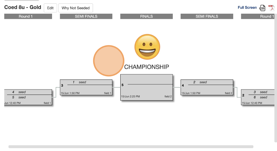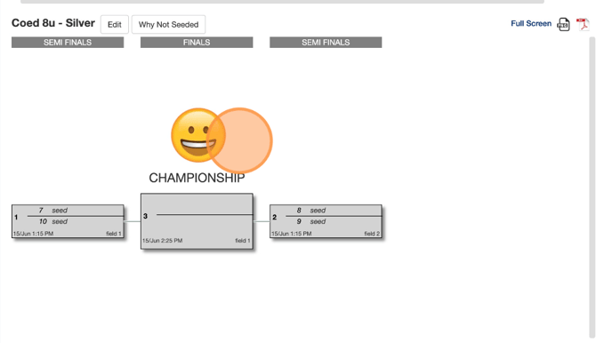 12. Once you publish and score your round robin games, the seeds in the bracket will fill in with team names accordingly