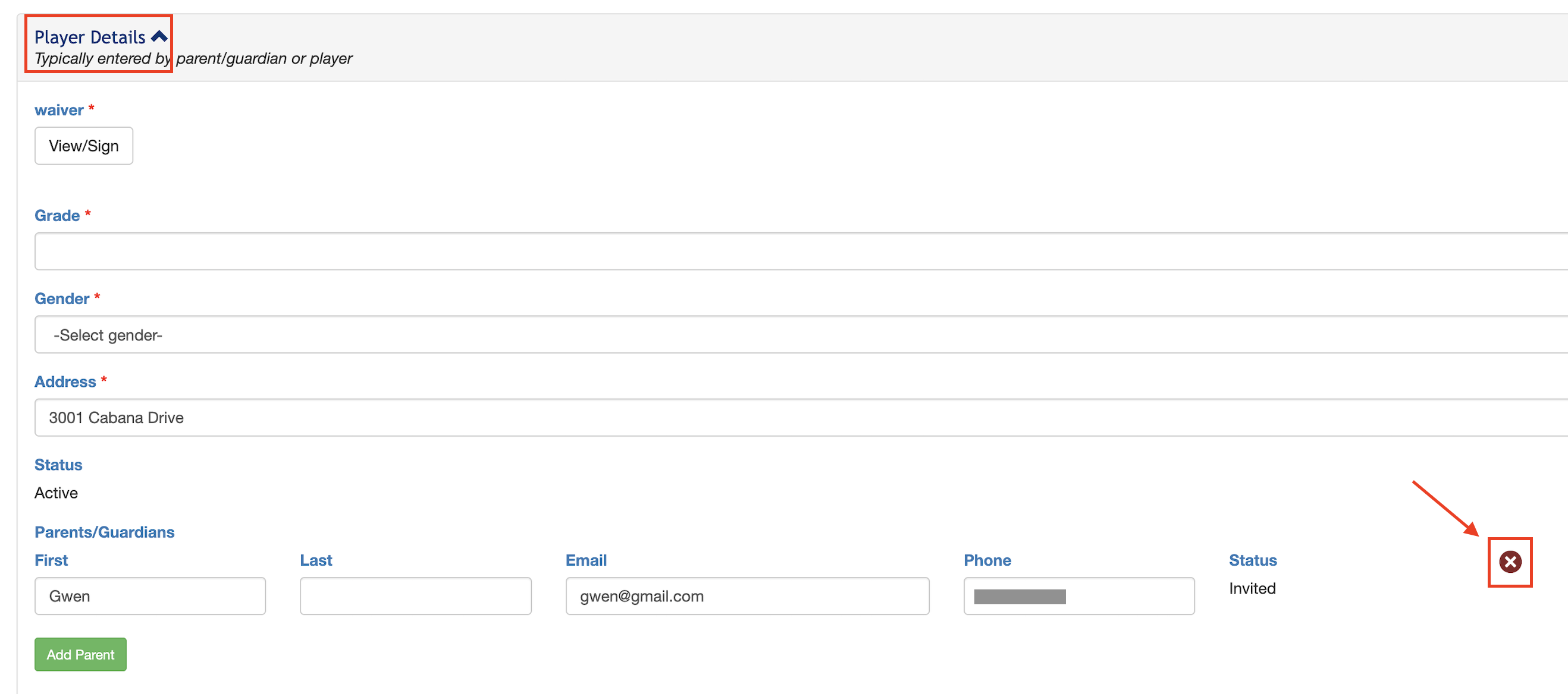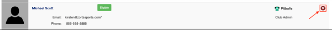 2. Find the coach you would like to remove and click the 'X' on the right side of their roster entry.