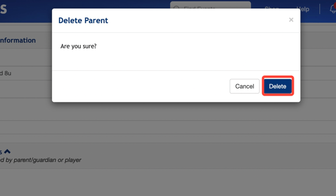 4. Click 'Delete' to confirm you would like to delete the parent entry.