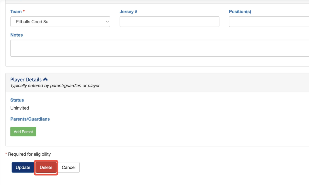 Method 1A - Deleting one PLAYER/PARTICIPANT entry
