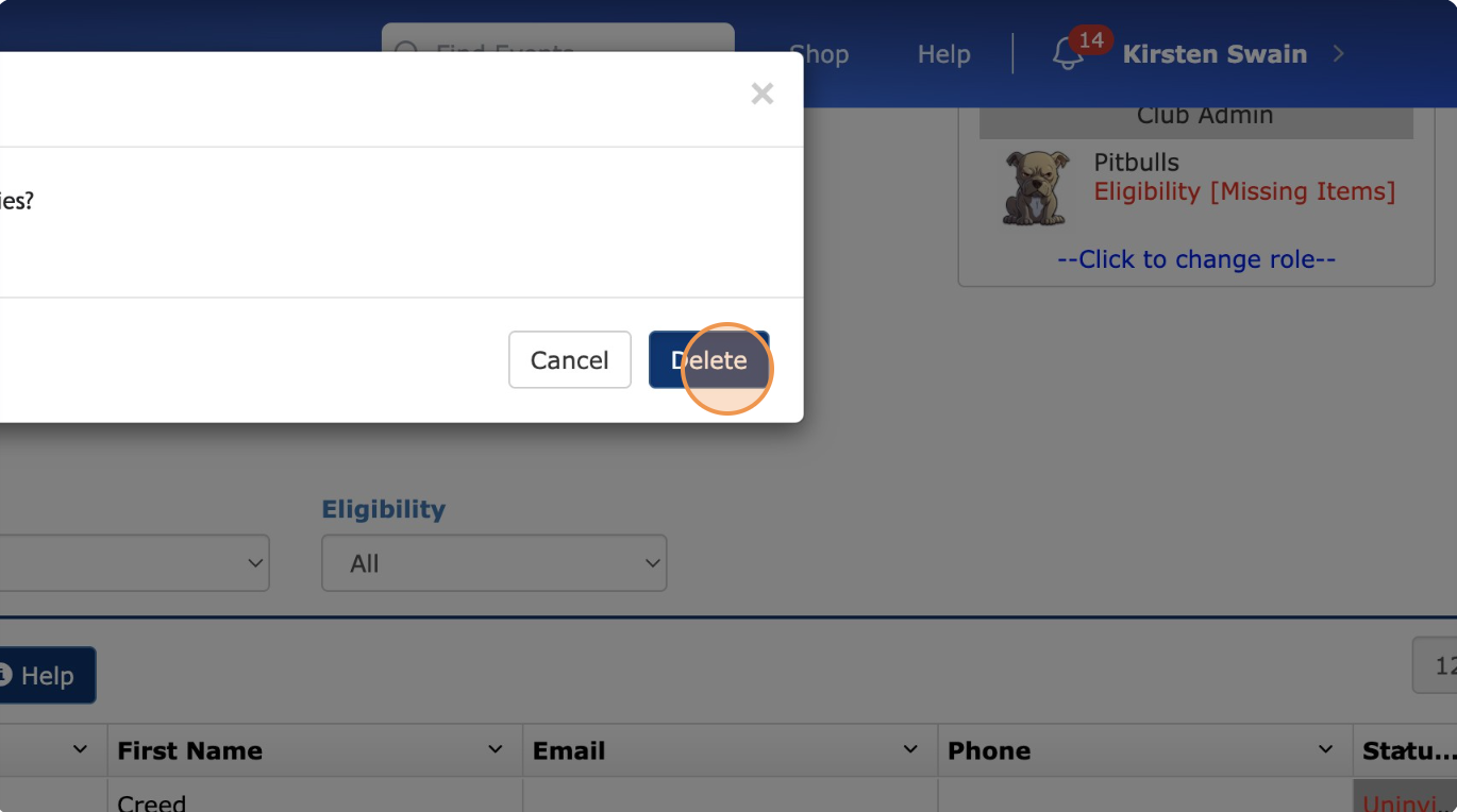 5. Confirm your decision by clicking 'Delete' one more time on the pop up.