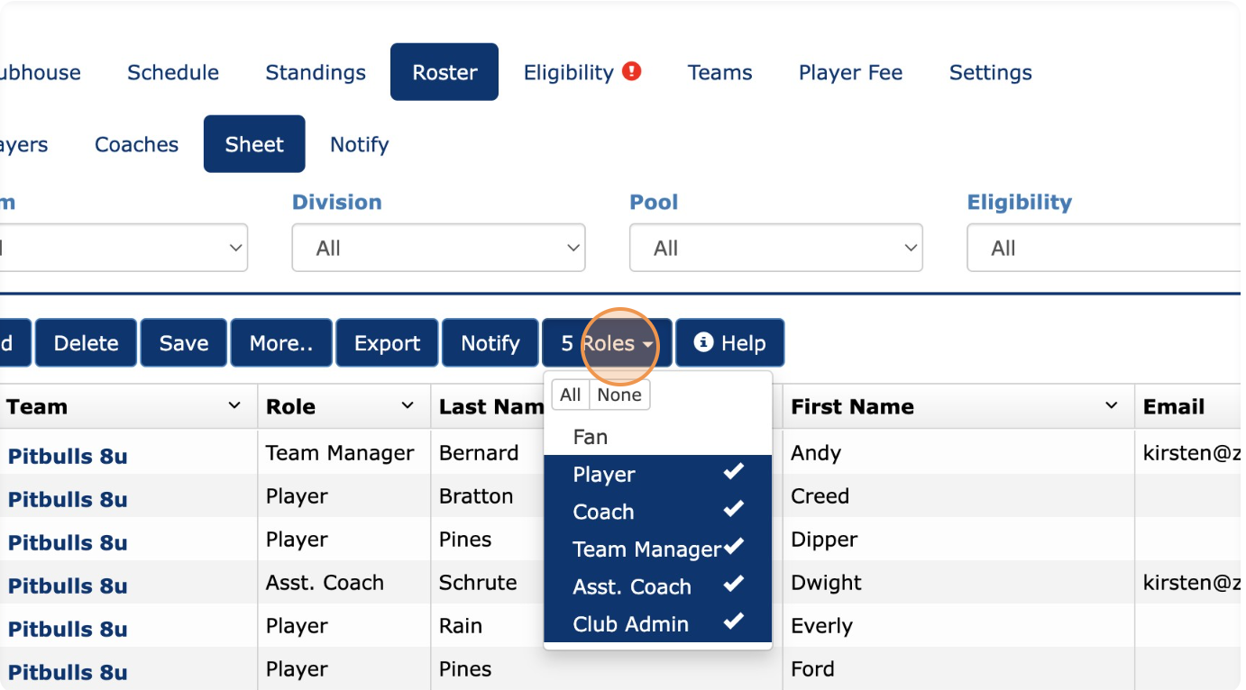 2. Click 'Roles' and select the role(s) that you would like to view. (For this example, I only want to view players so I will deselect everything else)
