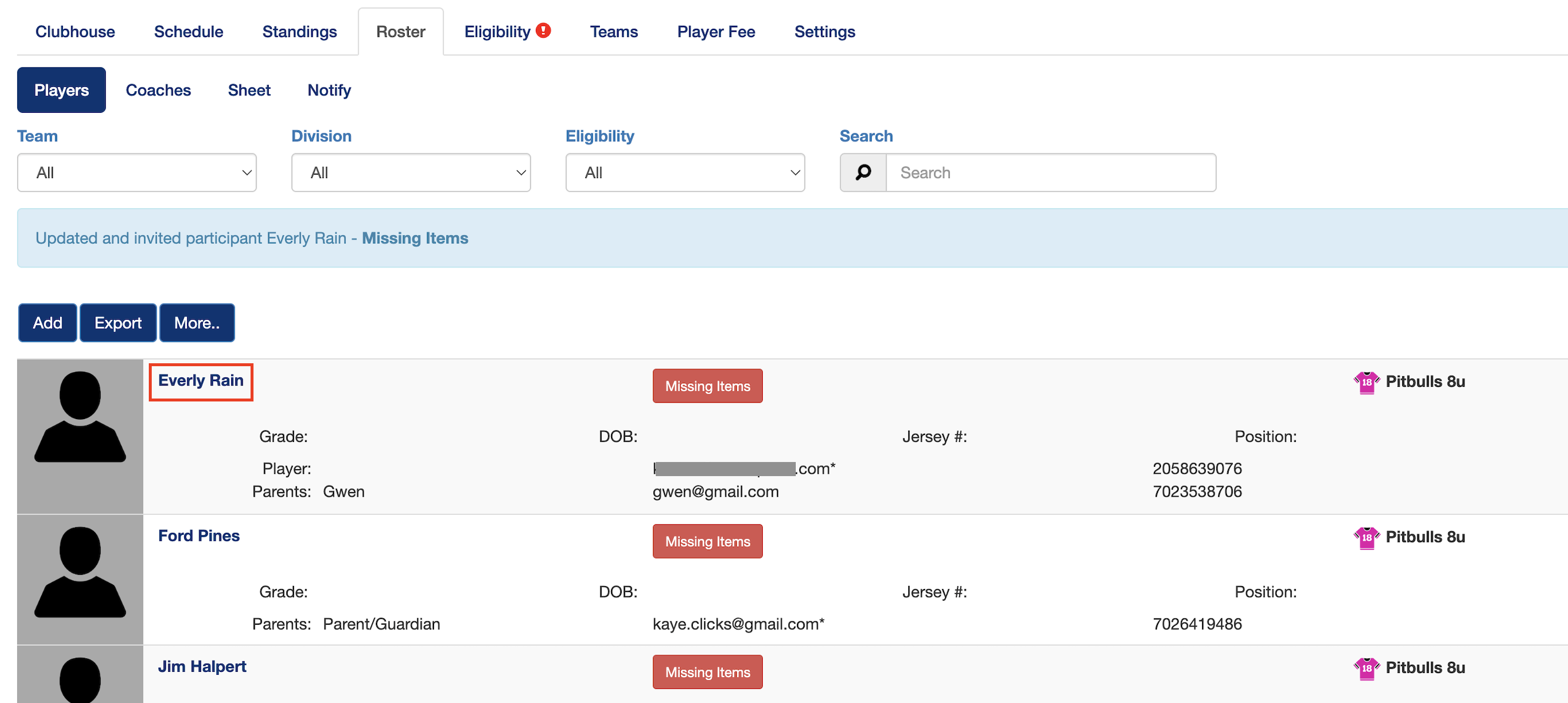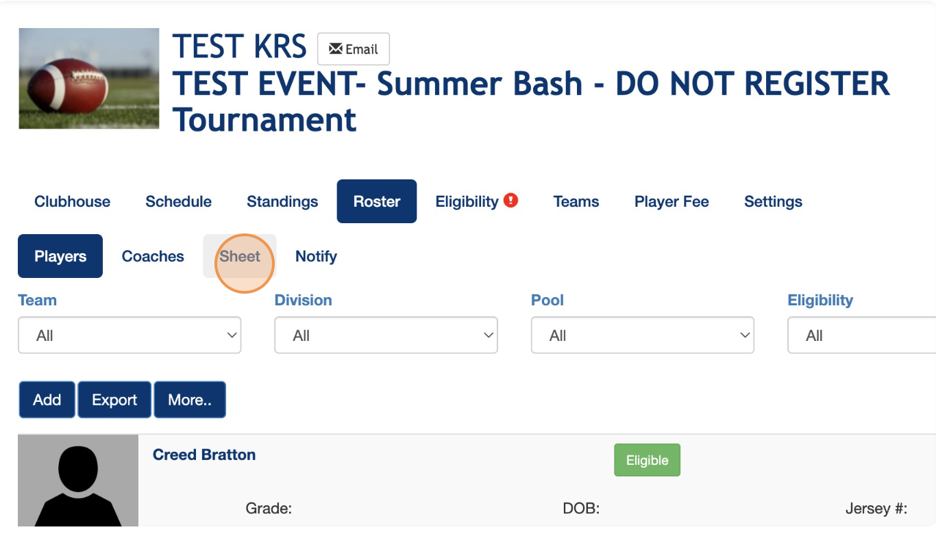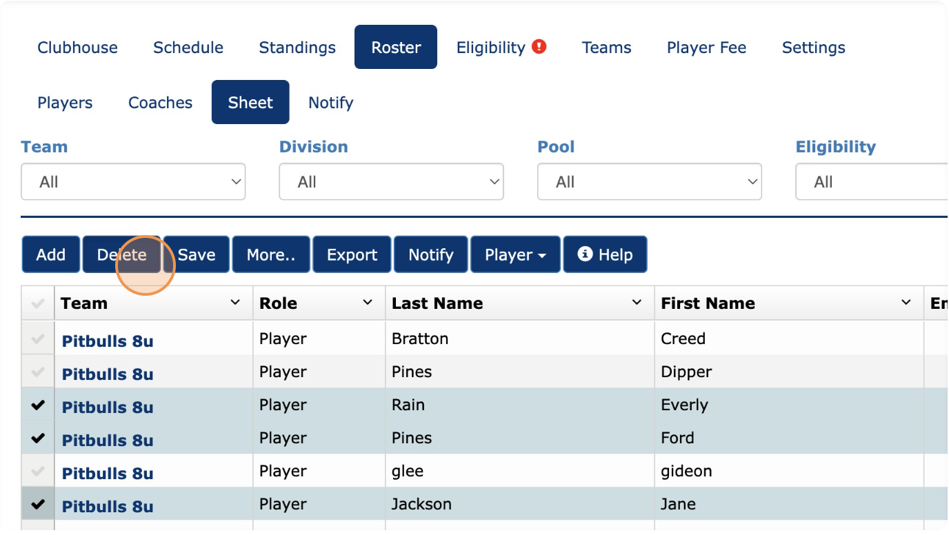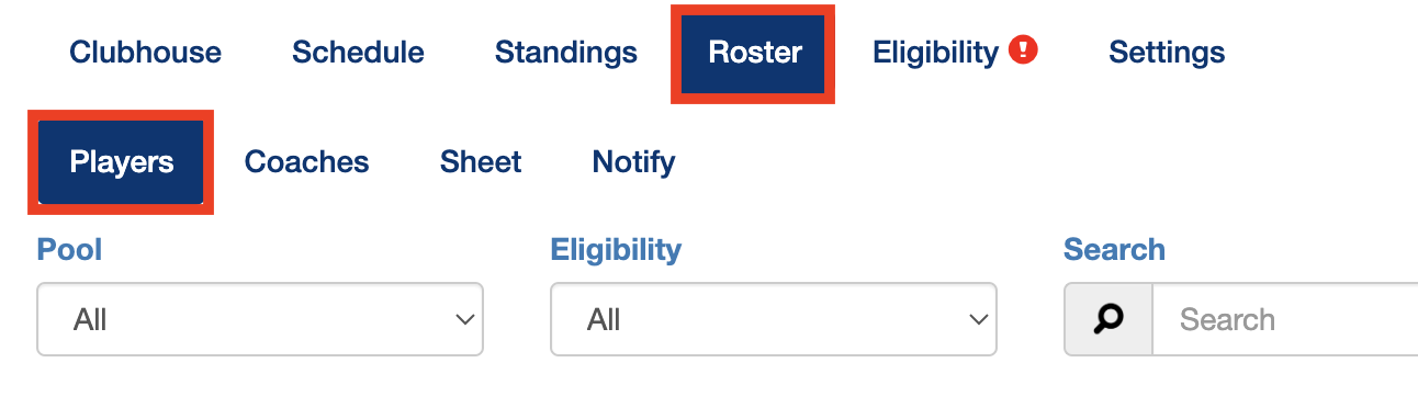 1. Select the ‘Roster’ tab, then select ‘Players/Participants’ if you're looking to delete a participant.