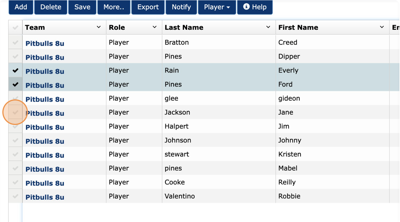 3. Select the participants that you would like to delete from the roster by clicking on the check mark to the left of their entries.