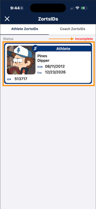 2. Click on your ZortsID that is labeled 'Incomplete'