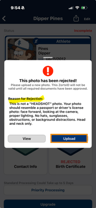 5. Note the reason for rejection and select ‘Upload’ to upload a new photo in accordance with the guidelines listed below.