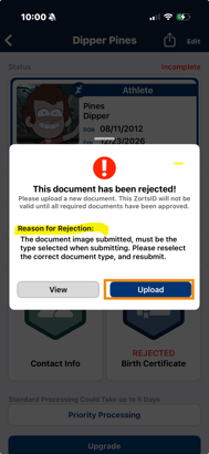 3. Click on the section that is labeled 'Rejected' to read the rejection notice and upload a new file