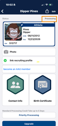 8. Please note that the ZortsID status is now 'Processing'. The card will be processed within 3-5 days unless a faster processing speed is purchased.