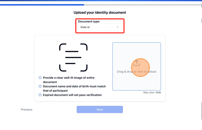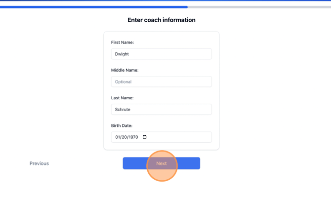 5. Enter coach's date of birth, upload headshot and photo of coach's ID.
