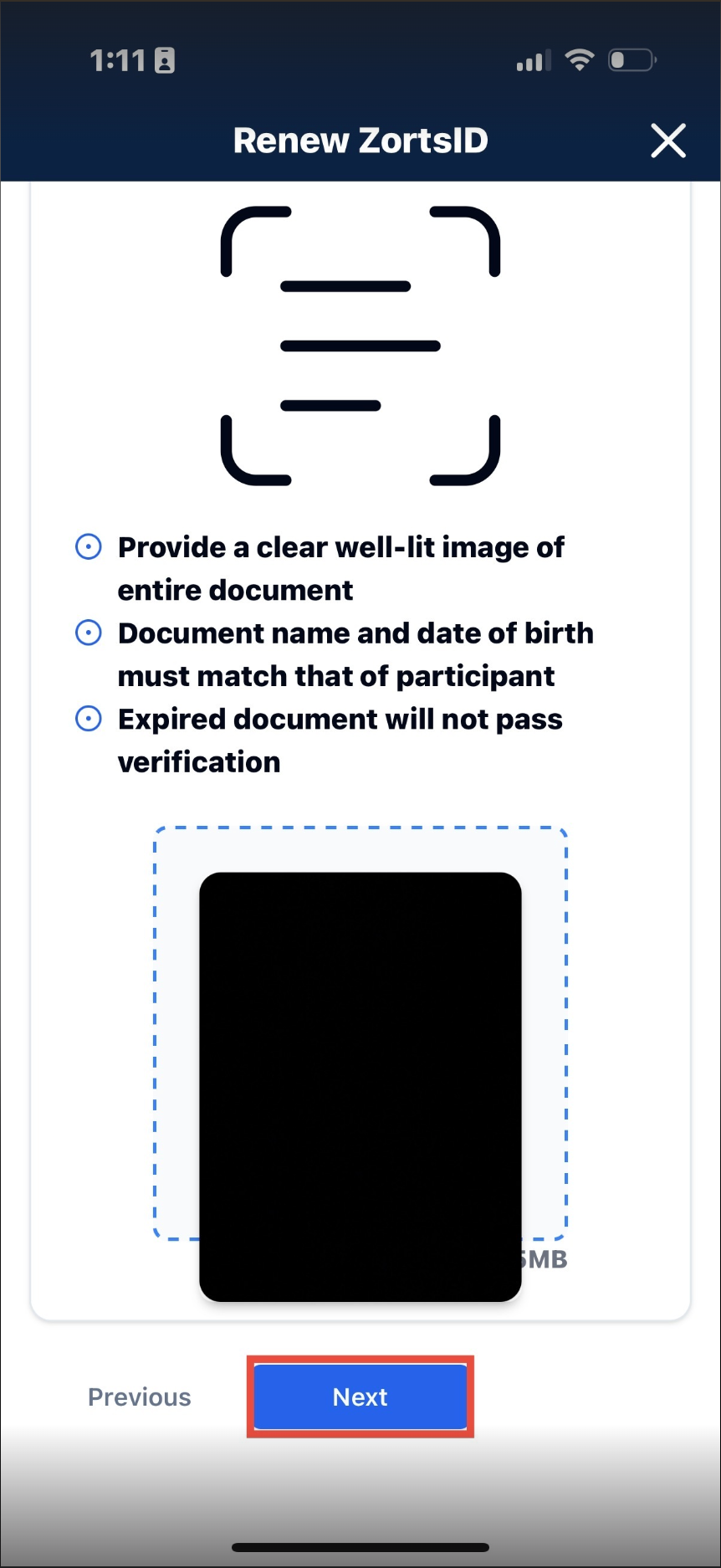 12. Click inside the square to the right to upload your document, then click ‘Next’.