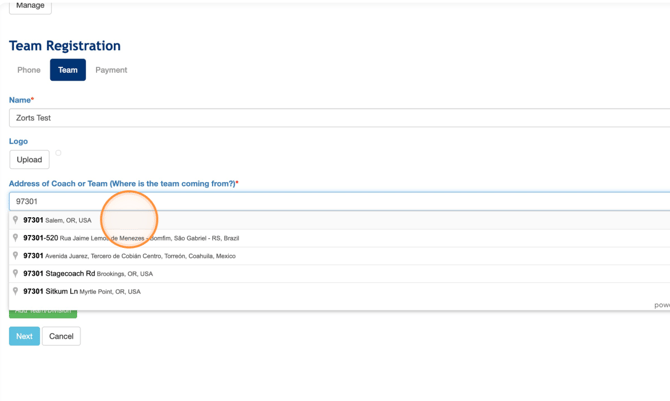 5. When entering your location, it's easiest to type a zip code. Make sure to select the correct location from the drop down.
