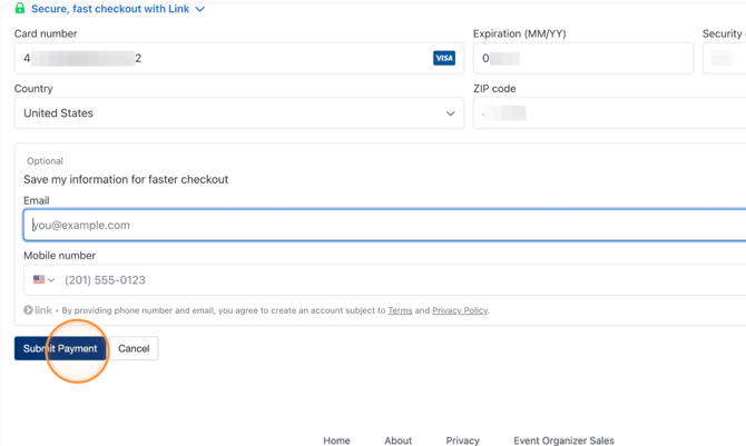 14. After your payment information is entered, you may skip the optional 'Save my information..' section and click 'Submit Payment'.